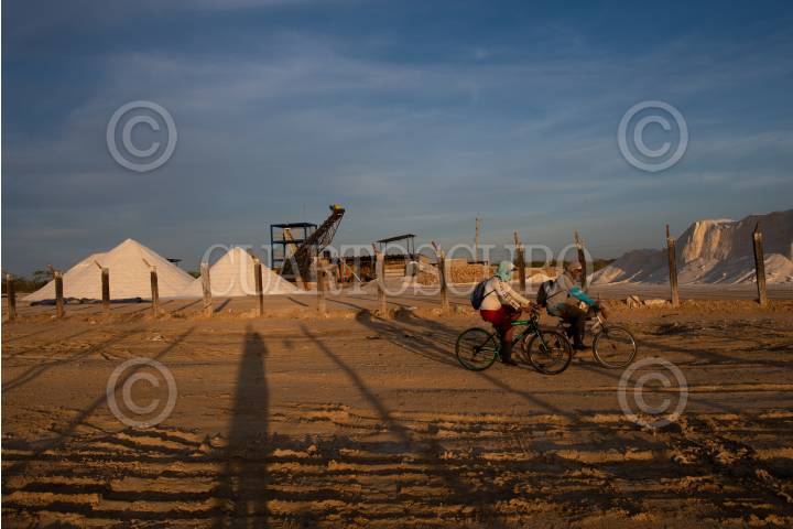 Trabajadores wuayús en una productora salina de municipio de Manaure, Colombia.
