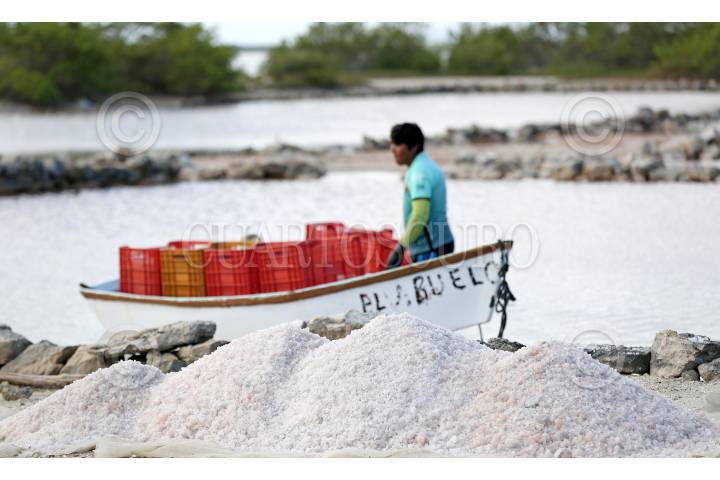 Un grupo de pescadores continúan con el tradicional cultivo de sal en las Charcas de Xtampú.