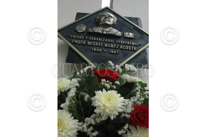 ECATEPEC,ESTADO DE MÉXICO, 30ENERO2009.- Rinden homenaje luctuoso profesores y alumnos a Misael Núñez Acosta, profesor y lider magisterial a su 28 aniversario del asesinato cuando salía de una reunión con maestros en la escuela "Héroes de Churubusco", en la colonia Tulpetlac a dos días de que se llevará a cabo el paro del magisterio de Integrantes de la Coordinadora Nacional de Trabajadores de la Educación (CNTE) y de la Coalición de Colonias de Tulpetlac. FOTO: MARIO NULO/CUARTOSCURO.COM