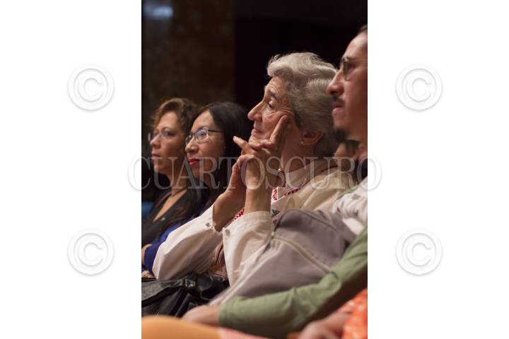 MEXICO, D.F, 18MAYO2014.- En la sala Manuel M. Ponce del Palacio de Bellas Artes se rindió un homenaje al poeta, diplomático, catedrático y crítico Hugo Gutierrez Vega en su cumpleaños número ochenta y dentro del ciclo "Protagonistas de la Literatura Mexicana". En la imagen, la esposa del poeta, Lucinda. FOTO: DAVID POLO /CUARTOSCURO.COM
