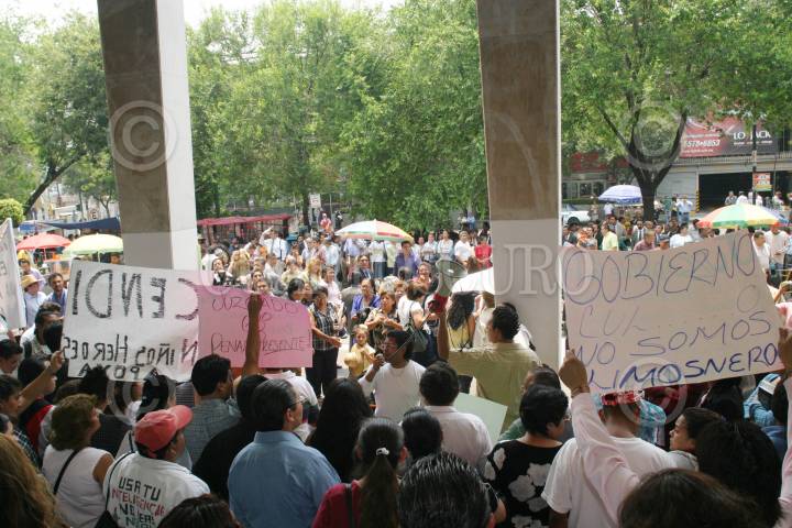 QUERÈTARO,QUERÈTARO.-24OCTUBRE2005.- Manifestaciòn afuera de las oficinas del SAT de profesores de los COBACH y CECyTEC, que exigen la aplicaciòn del presupuesto de 341 millones de pesos del "Programa Nacional de Nivelaciones Salariales del Personal". FOTO: Fabiola Salazar Mapy/CUARTOSCURO.COM