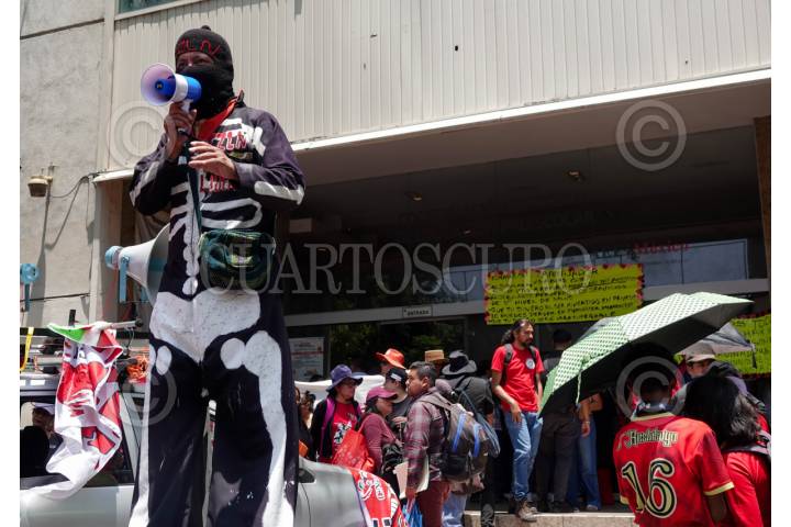 CIUDAD DE MÉXICO, 03JULIO2025.- Maestras y maestros de la Coordinadora Nacional de Trabajores de la Educación (CNTE) se manifestaron en las sede de la Coordinación General de Recursos Humanos de la Secretaría de Educación Pública (SEP) debido al descuento salarial que autoridades implementaron tras el paro nacional. FOTO: GALO CAÑAS/CUARTOSCURO.COM