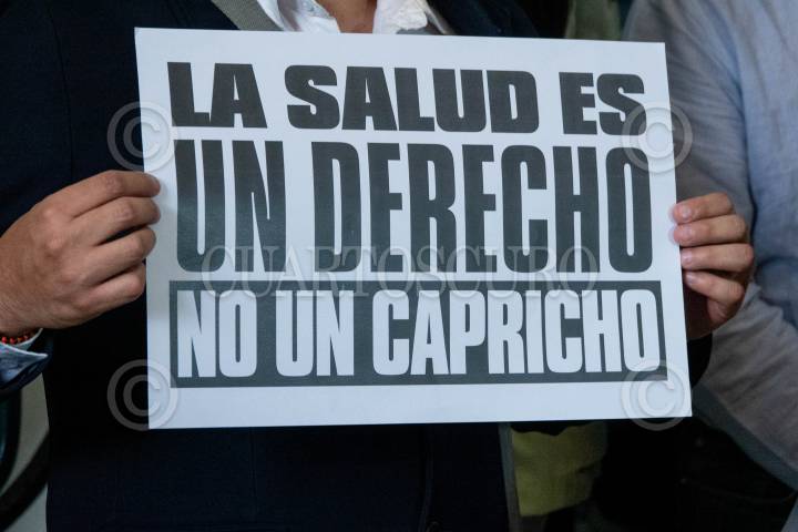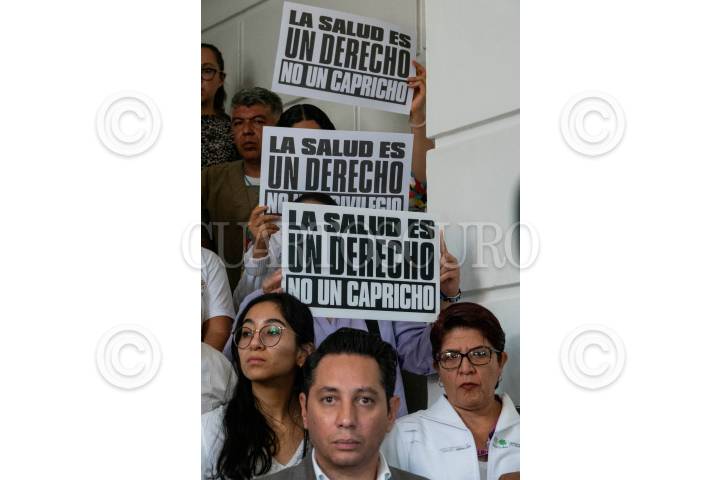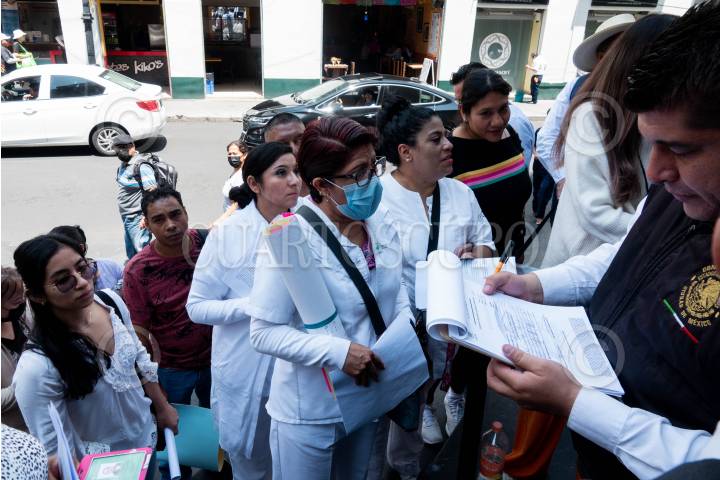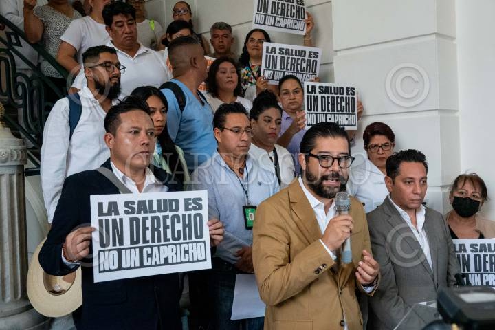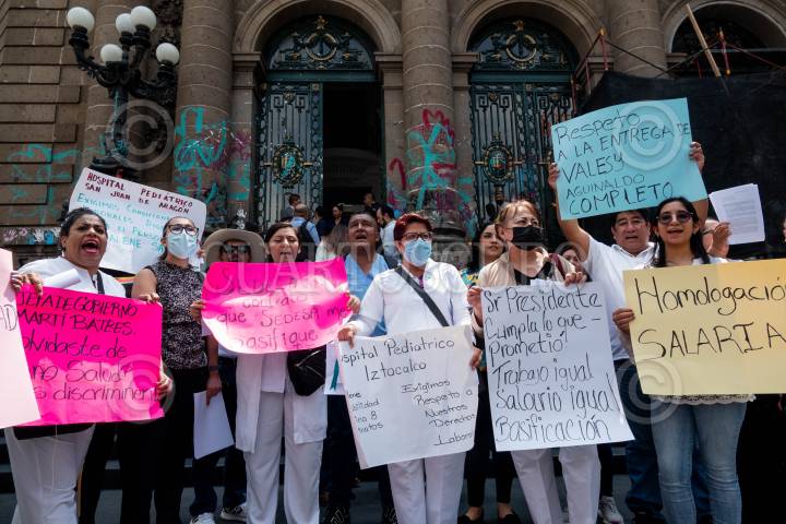 Protesta de personal de salud en el Congreso de la Ciudad de México para exigir la basificación y salario digno, prometido por el Gobierno Federal.