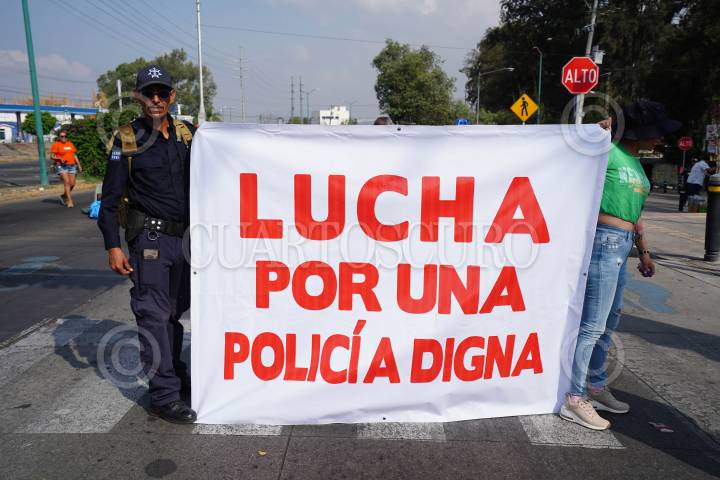 MORELIA, MICHOACÁN, 14JUNIO2024.- Un grupo de policías estatales de la Guardia Civil de Michoacán, quienes fueron acompañados por un asesor legal especializado en derecho laboral, han tomado una vez más el Periférico de Morelia a manera de protesta, para hacer oír sus peticiones ante las autoridades del estado. Bajo el lema “lucha por una policía digna”, un contingente de aproximadamente 20 individuos interrumpió el flujo vehicular en esta importante arteria. FOTO: JUAN JOSÉ ESTRADA SERAFÍN /CUARTOSCURO.COM