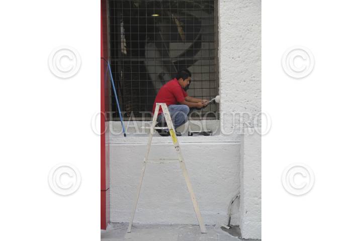 MÉXICO, D.F., 03OCTUBRE2013.-Luego de las afectaciones y daños registrados por algunos grupos durante la Marcha de conmemorativa de la matanza de Tlatelolco a tiendas de autoservicio y Bancos en Paseo de la Reforma, las empresas realizan desde ayer las reparaciones pertinentes para su reactivación. FOTO: JUAN PABLO ZAMORA /CUARTOSCURO.COM