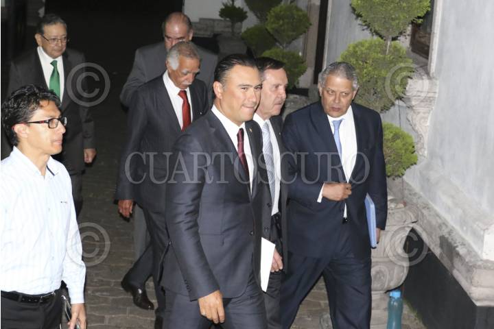 CIUDAD DE MÉXICO, 09AGOSTO2016.- Manuel Herrera Vega; de la Cámara Nacional de la Industria de la Transformación (CANACINTRA); Enrique Solana Sentíes; de la Confederación de Cámaras Industriales (CONCAMIN), y Luis Robles Miaja, presidente de la Asociación de Bancos de México, salen del encuentro que sostuvo el titular de la Secretaría de Gobernación, Miguel Ángel Osorio Chong, al encuentro asistieron otros líderes empresariales. FOTO: SAÚL LÓPEZ /CUARTOSCURO.COM