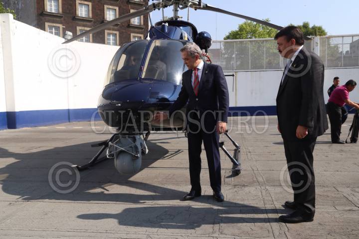 CIUDAD DE MÉXICO, 13ABRIL2017.- La Ciudad de México está lista para las actividades de Semana Santa, afirmó el Jefe de Gobierno, Miguel Ángel Mancera Espinosa, luego de realizar un sobrevuelo de supervisión por los accesos carreteros a la capital del país y por la zona de la delegación Iztapalapa. “Con el despliegue que anunciamos de más de 25 mil elementos, trabajando todas las áreas: Seguridad Pública, Procuraduría, Protección Civil, Gobierno, la propia operatividad que tendrá la jefatura delegacional, coordinación total C2, C4, 911 también funcionando con toda la estructura”, destacó. En la imagen el Jefe de Gobierno muestra la cámara con la que se pretende inhibir el exceso de velocidad, lo acompaña el secretario de Seguridad Pública, Hiram Almeida. FOTO: CDMX /CUARTOSCURO.COM