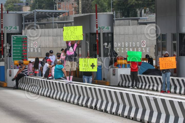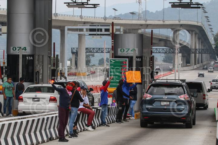 Integrantes de distintas organizaciones cierran y dan paso libre en la caseta México-Cuernavaca.