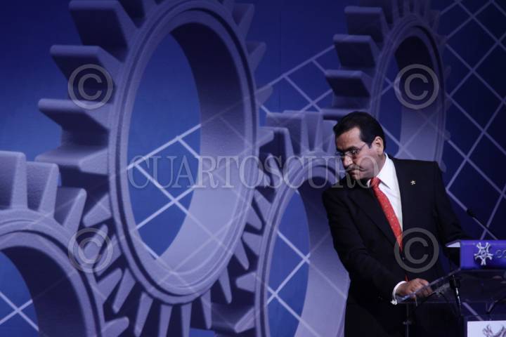 MÉXICO, D.F., 23MARZO2009.- Ismael Plascencia Nuñez Presidente Saliente de la confederación de Cámaras Industriales durante su discurso, durante la 91 asamblea general ordinaria de la (CONCAMIN), donde Felipe Calderón presidente de México realizó la toma de protesta de la nueva mesa directiva. FOTO: SÁSHENKA GUTIERREZ/CUARTOSCURO.COM