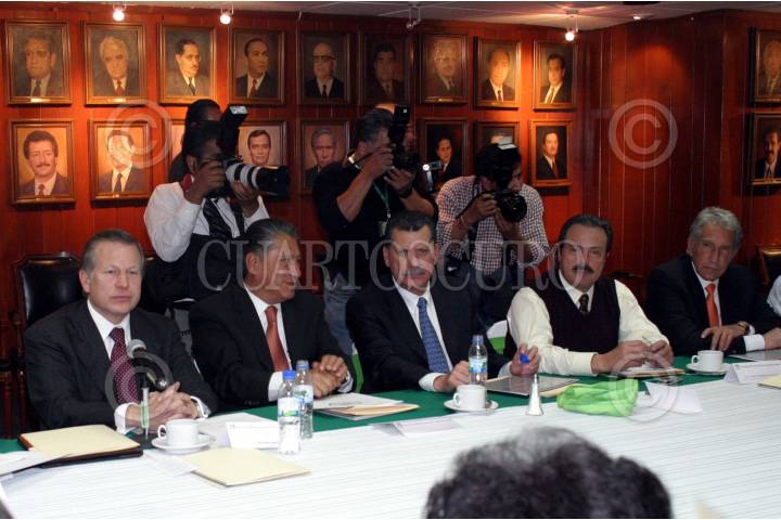 MEXICO D.F. 01MARZO2005.- Manuel Angel Nuñez Soto, gobernador saliente de Hidalgo, Melquíades Morales, ex-gobernador de Puebla, Enrique Jackson, senador del PRI, Enrique Martínez Martínez, gobernador de Coahuila y Arturo Montiel, gobernador del Estado de México, se reunieron con el dirigente nacional del PRI, previo a su Asamblea Nacional. FOTO: Moisés Pablo/CUARTOSCURO.COM