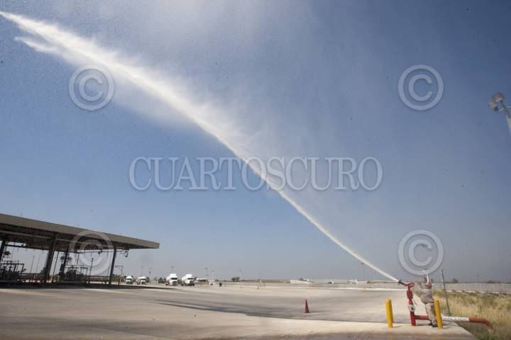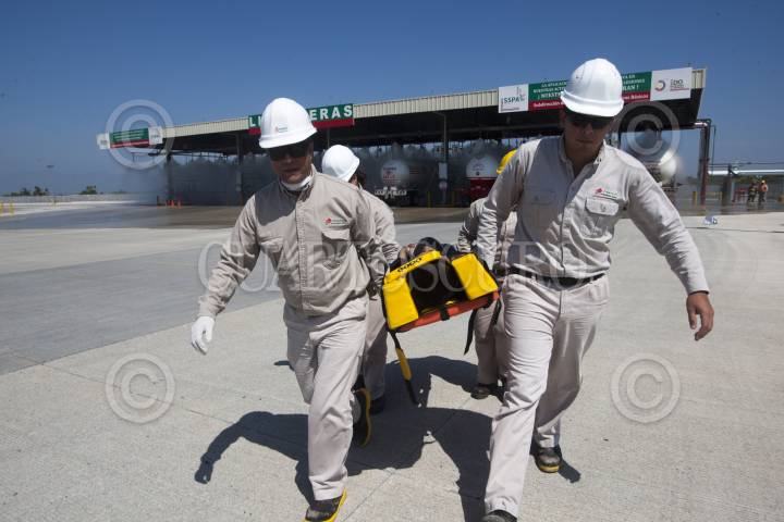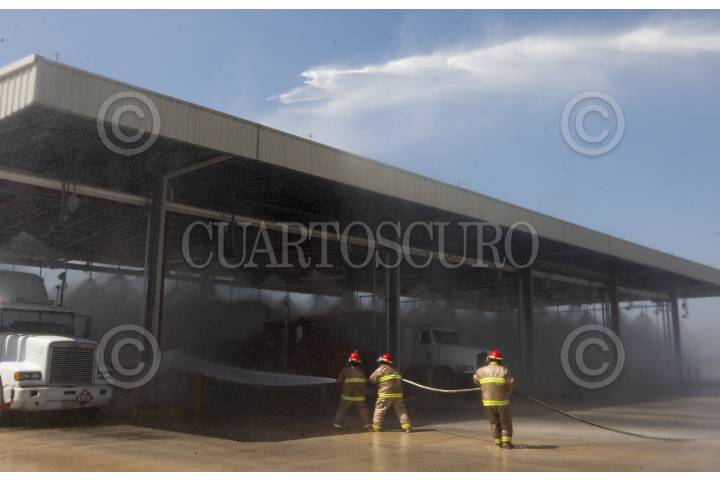 SALINAS VICTORIA, NUEVO LEÓN, 07JULIO2016. Petróleos Mexicanos realizó un simulacro contraincendio en la Terminal de Gas Licuado Monterrey. A partir del 8 de julio los simulacros se efectuarán en diversas instalaciones como refinerías, terminales de abastecimiento, complejos procesadores de gas, activos de producción y edificios administrativos, ubicados en los estados de Veracruz, Campeche, Tabasco, Tamaulipas, Guanajuato, Jalisco, Hidalgo, con motivo del Día Nacional de la Preparación y Respuesta a Emergencias Químicas. FOTO: GABRIELA PÉREZ MONTIEL /CUARTOSCURO.COM