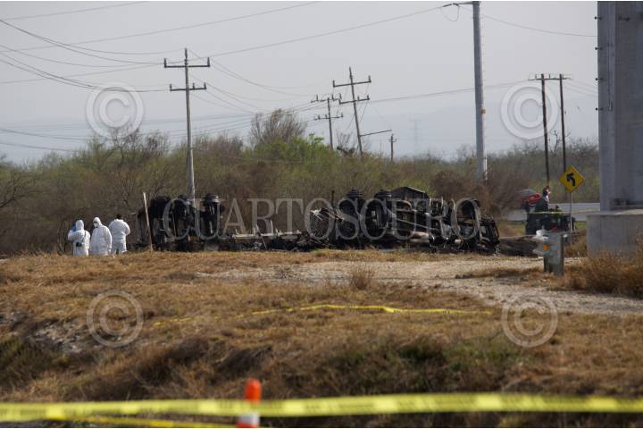Equipo forense en el rescate de víctimas mortales en los alrededores de la Pipa que explotó en el accidente contra un camión urbano.