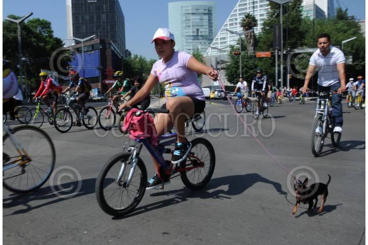 MÉXICO, DF., 30MAYO2010.- Una jovencita pasea por avenida Reforma con su perro durante el Trigésimo Tercer Ciclotón Bicentenario, con un recorrido es de 32 kilometros por distintas zonas de la capital saliendo de la colonia Juarez de la delegación Cuauhtemoc. El gobierno del D.F. invita a participar a turistas y habitantes del de esta ciudad el último domingo de cada mes a salir a la calle en bicicleta, patines y a caminar. FOTO: PEDRO VALTIERRA/CUARTOSCURO.COM