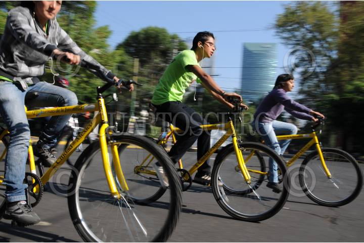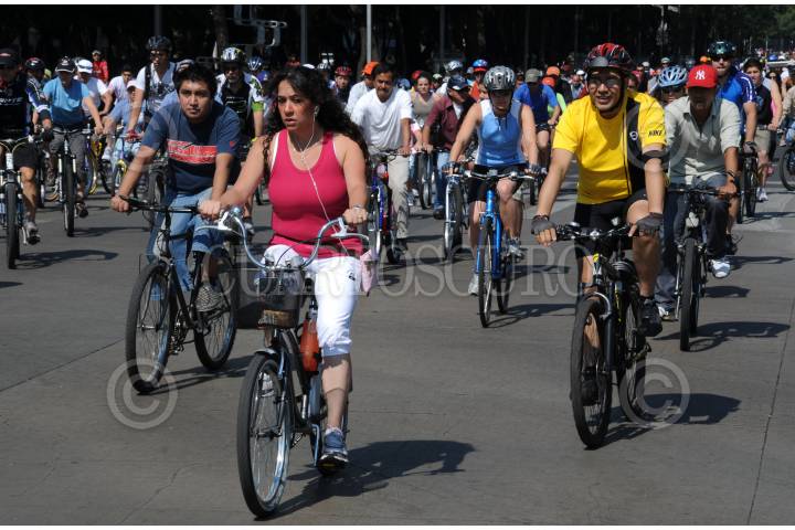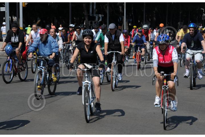 MÉXICO, DF., 30MAYO2010.- Jóvenes, niños y personas de todas las edades participan en el Trigésimo Tercer Ciclotón Bicentenario, con un recorrido es de 32 kilometros por distintas zonas de la capital saliendo de la colonia Juarez de la delegación Cuauhtemoc. El gobierno del DF invita a participar a turistas y habitantes de esta ciudad el último domingo de cada mes a salir a la calle en bicicleta, patines y a caminar. La imagen en Paseo de la Reforma. FOTO: PEDRO VALTIERRA/CUARTOSCURO.COM