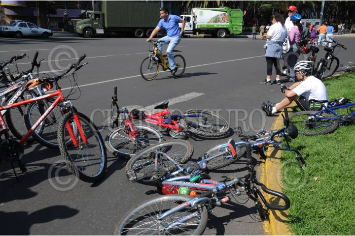 MÉXICO, DF., 30MAYO2010.- En la glorieta de La Diana niños, jóvenes, y personas de todas las edades descansan después de su participación en el Trigésimo Tercer Ciclotón Bicentenario, con un recorrido es de 32 kilómetros por distintas zonas de la capital saliendo de la colonia Juarez de la delegación Cuauhtemoc. El gobierno del DF invita a participar a turistas y habitantes de esta ciudad el último domingo de cada mes a salir a la calle en bicicleta, patines y a caminar. FOTO: PEDRO VALTIERRA/CUARTOSCURO.COM
