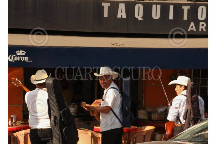 CIUDAD DE MÉXICO, 17FEBRERO2019.- Trio de músicos amenizan la tarde, afuera de una taquería en la colonia Roma. Según datos del Financiero los artistas de las calles, ganan entre 150 y 200 pesos, cifra mayor al salario mínimo que ronda los 102.68 pesos. FOTO: ROGELIO MORALES /CUARTOSCURO.COM