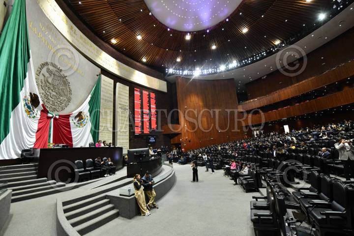 CIUDAD DE MÉXICO, 29SEPTIEMBRE2024.- Curules vacíos de legisladores de los grupos parlamentarios: PAN y PRI durante sesión la ordinaria de la LXVI Legislatura de la Cámara de Diputados en la que se dio lectura a la declaratoria de publicidad al dictamen de reforma al Poder Judicial. FOTO: MARIO JASSO/CUARTOSCURO.COM