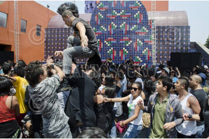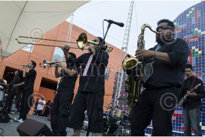 MÉXICO, D.F., 09AGOSTO2014.- La banda mexicana de ska Salón Victoria se presentó ante decenas de jóvenes fanáticos de este género musical, en el Centro Nacional de las Artes (Cenart), como parte de las actividades del Ciclo Fusión 2014. Salón Victoria inició su carrera en 1997 y son originarios de la Ciudad de México. FOTO: MARÍA JOSÉ MARTÍNEZ /CUARTOSCURO.COM