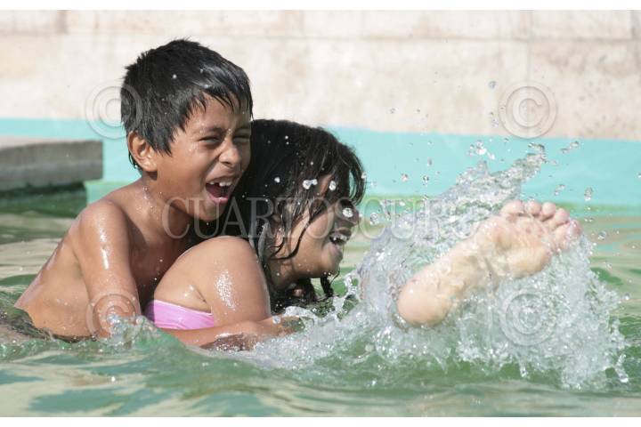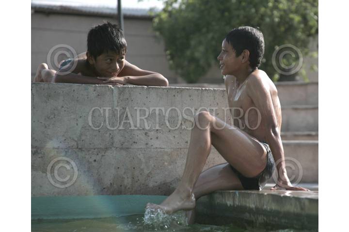 SALTILLO, COAHUILA, 29MAYO2012.- Algunos niños se dan un chapuzón en una plaza pública, después de que se presentó el frente frío 47 y el calor regresó a la capital del estado con temperaturas de hasta 38 grados. FOTO: KARLA ITZEL RUÍZ /CUARTOSCURO.COM