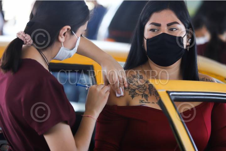 Jóvenes mayores de edad acuden a aplicarse la vacuna contra Covid 19 en Saltillo