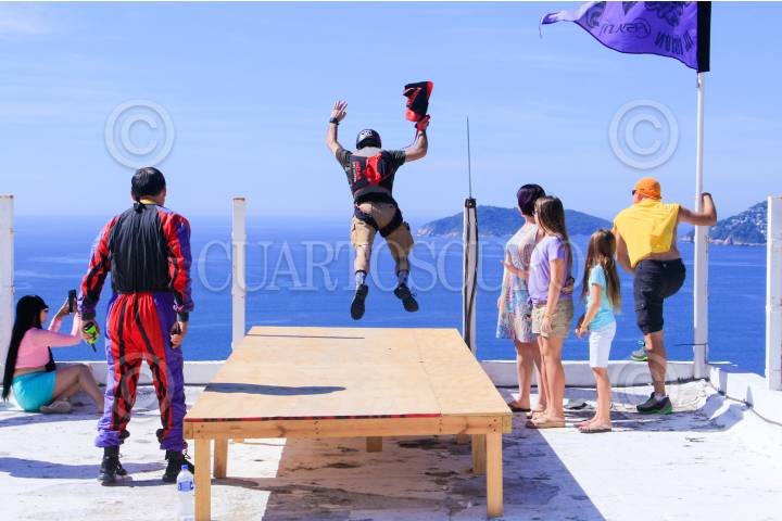Último día de la exhibición de salto de base en el hotel la Palapa en Acapulco, Guerrero.