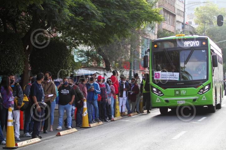 Usuarios realizaron filas para abordar el RTP como transporte alterno por el cierre de la estación del Metro Salto del Agua de la Línea 1
