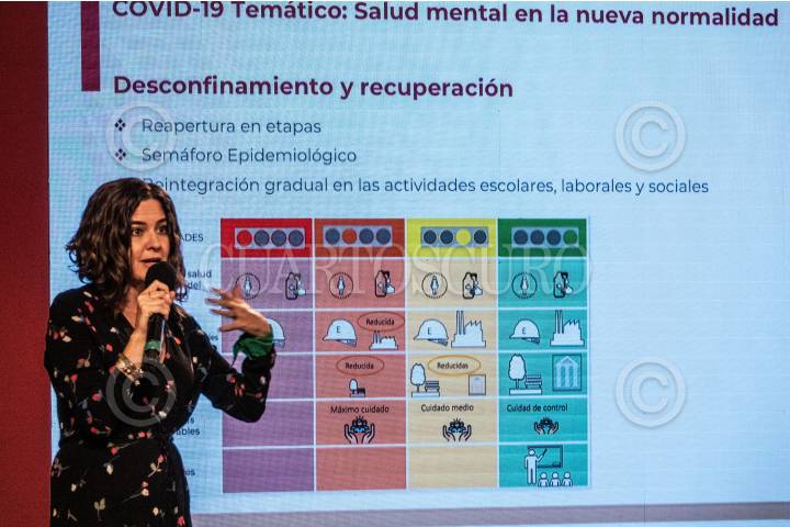 Lorena Rodríguez Bores, secretaria Técnica del Consejo Nacional de Salud Mental, durante conferencia de prensa para informar sobre la actualización de datos de la pandemia de coronavirus (covid-19) en el país, e información general sobre el la salud mental.