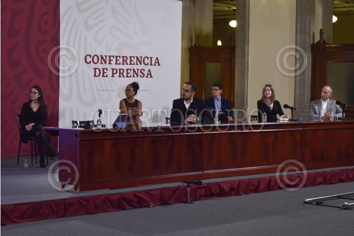 Diana Tejadilla, directora de Normatividad y Coordinación Institucional en el Consejo Nacional de Salud; Juan Manuel Quijada, director General de los Servicios de Atención Psiquiátrica; Lorena Rodríguez Bores, secretaria Técnica del Consejo Nacional de Salud Mental; Eva Linda Barrón, doctora y experta en tratamientos de salud mental; el doctor Jorge González Obrera, y Gady Zabicky, Comisionado Nacional contra las Adicciones, durante conferencia de prensa para informar sobre la actualización de datos de la pandemia de coronavirus (covid-19) en el país, e información general sobre el la salud mental.