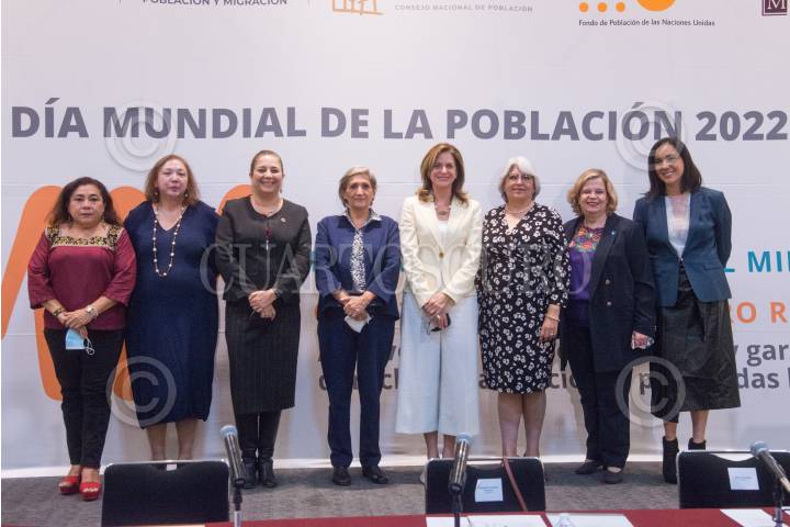 Martha Alicia Angulo García, Secretaria Técnica del Consejo Estatal de Población de Campeche; Rosario Cárdenas, Presidenta del Consejo Consultivo Ciudadano; Silvia Giorguli, Presidenta de El Colegio de México; Gabriela Rodríguez, Secretaria General del Consejo Nacional de Población (CONAPO); Alanna Armitage, Representante del Fondo de Población de las Naciones Unidas en México (UNFPA) y Directora para Cuba y República Dominicana; Graciela Márquez Colín, Presidenta del Instituto Nacional de Estadística, Geografía e Informática (INEGI), Nadine Gasman, presidenta del Instituto Nacional de las Mujeres (INMUJERES), y Karla Iberia Sánchez, periodista, encabezaron el acto protocolario en conmemoración del Día Mundial de la Población 2022, en el que se habló sobre la importancia de atender diversas cuestiones de población y desarrollo, salud sexual y reproductiva, género, entre otras.