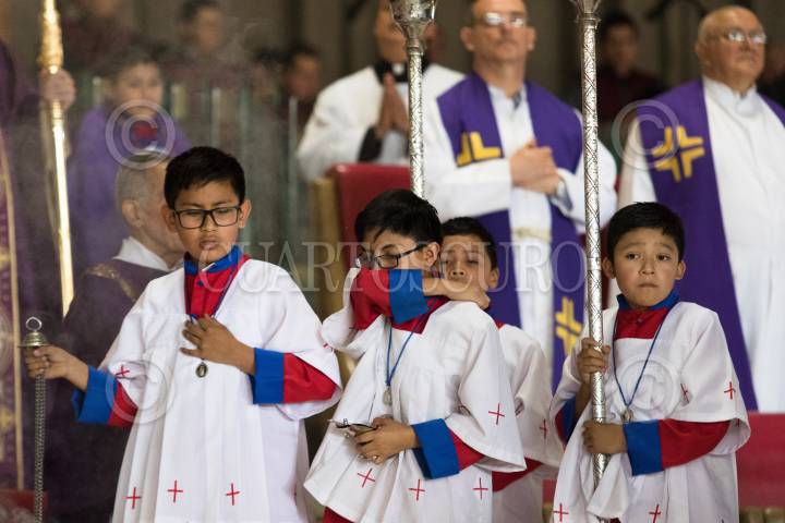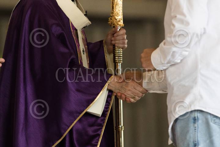 El Arzobispo Primado de México Carlos Aguiar Retes saludó a las personas encargadas de entregar las ofrendas en la misa, a pesar de que se ha pedido a la población evitar el saludo de mano para evitar enfermedades virales como el Covid -19