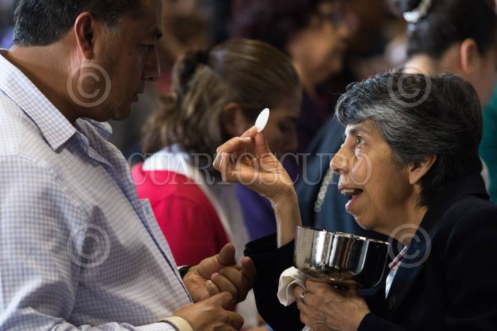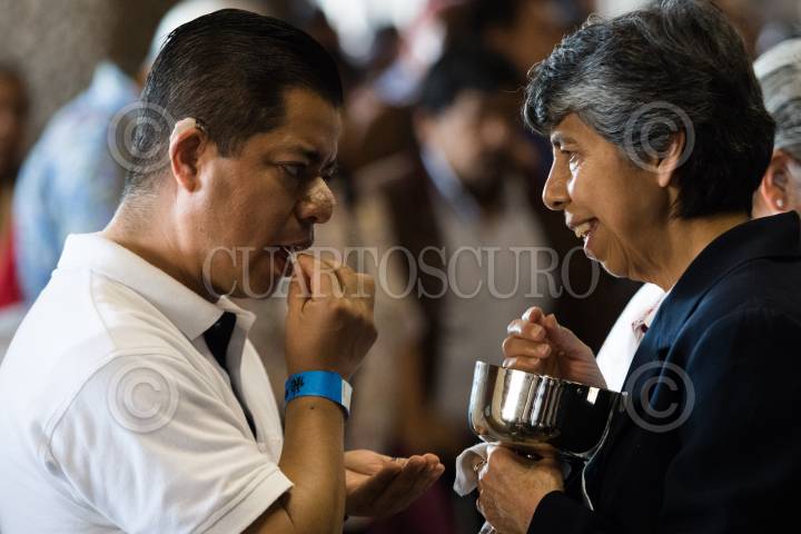 La hostia fue entregada en la mano de las personas que tomaron la comunión como una medida de salud ante la alerta sanitaria por el Covid-19