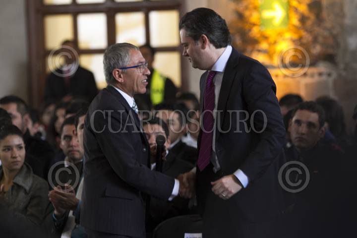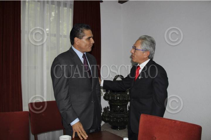 MORELIA, MICHOACÁN, 15JUNIO2015.- Salvador Jara Guerrero recibió en Casa de Gobierno al gobernador electo Silvano Aureoles Conejo para dialogar sobre la entrega recepción de la administración del estado. FOTO: CUARTOSCURO.COM