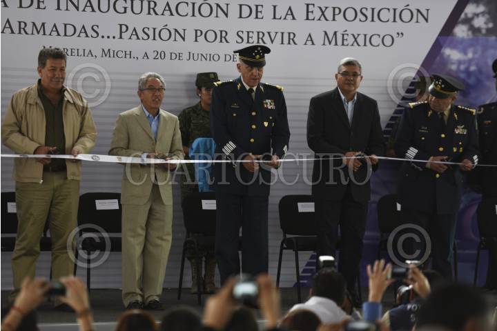 MORELIA, MICHOACÁN, 20JUNIO2015.- El gobernador del estado de Michoacán, Salvador Jara Guerrero, y Salvador Cienfuegos, Secretario de Defensa Nacional, encabezaron la inauguración de la exposición "Fuerzas Armadas, Pasión por Servir a México". FOTO: PEDRO ANZA /CUARTOSCURO.COM