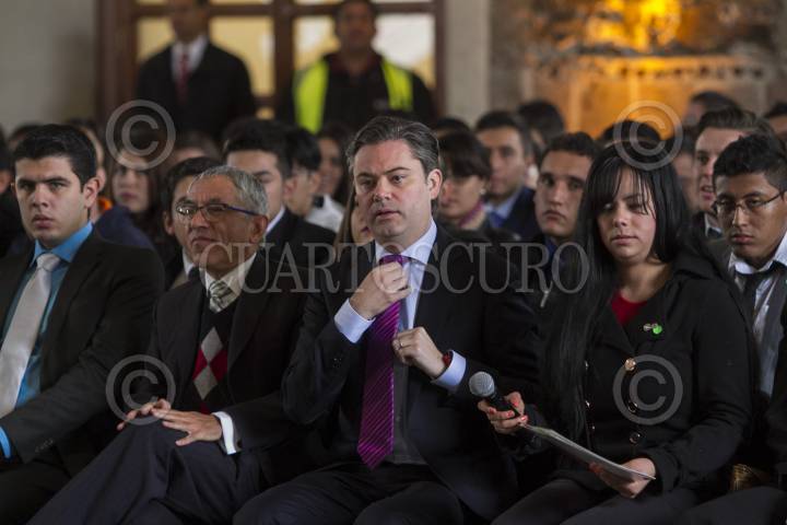 MÉXICO, D.F., 13ENERO2016.- Salvador Jara Guerrero, subsecretario de Educación Media Superior, y Aurelio Nuño, secretario de Educación Pública, durante el encuentro con estudiantes de Institutos Tecnológicos y Politécnicos en la explanada central de la Biblioteca de México "José Vasconcelos". El titular de la SEP dió a conocer que para el 2016 aumentará 40 por ciento las becas para estudiantes de estas instituciones, pese a recortes en el presupuesto federal. FOTO: MOISÉS PABLO /CUARTOSCURO.COM
