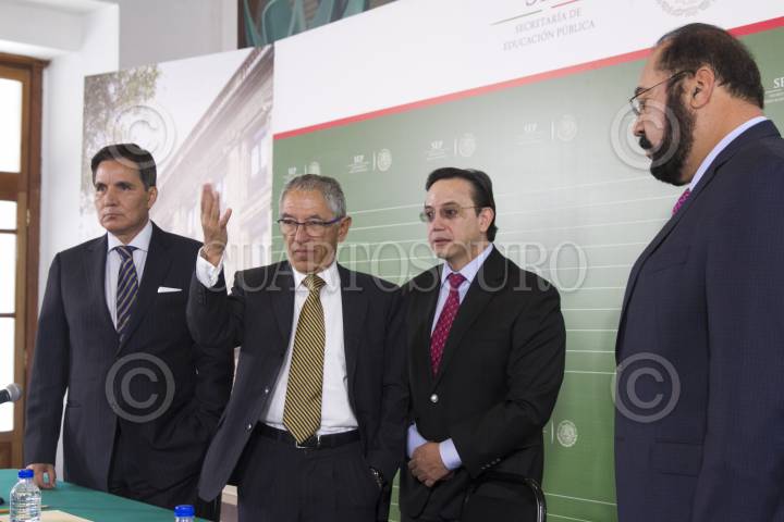 CIUDAD DE MÉXICO, 06JULIO2016.- Manuel Quintero, director general del Tecnologico Nacional de México; Salvador Jara Guerrero, subsecretario de Educación Superior; Eduardo Gutiérrez Campos, director general de comunicación social de la SEP; y Héctor Arreola Soria, coordinador general de universidades tecnológicas y politécnicas, ofrecieron una conferencia de prensa para hablar sobre el programa "Un lugar para ti", la cual atiende la demanda de alumnos que no son aceptados en instituciones como la UNAM, IPN y UAM y les ofrece un lugar en el nivel medio superior. FOTO: MOISÉS PABLO /CUARTOSCURO.COM
