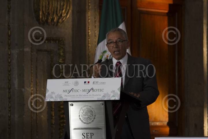 CIUDAD DE MÉXICO, 04AGOSTO2016.- Salvador Jara Guerrero, subsecretario de Educación Superior, durante la ceremonia de despedida de becarios MEXFITEC y MEXPROTEC 2016-2017, en el salón Hispanoamericano de la Secretaría de Educación Pública. FOTO: MOISÉS PABLO /CUARTOSCURO.COM