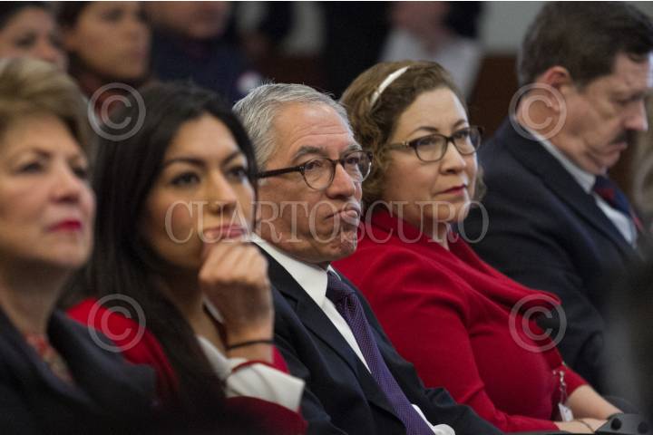 CIUDAD DE MÉXICO, 03MARZO2016.- Javier Treviño Cantú, subsecretario de Educación Básica, Irma Adriana Gómez Cavazos, titular de la Oficialía Mayor de la SEP, y Salvador Jara Guerrero, subsecretario de Educación Media Superior, durante el encuentro con maestros destacados de la evaluación magisterial en el patio central de la SEP. FOTO: MOISÉS PABLO /CUARTOSCURO.COM