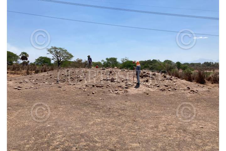 COSTA NOROCCIDENTAL, NAYARIT, 17ENERO2024.- Con motivo de la construcción y puesta en operación del Distrito de Riego “Alejandro Gascón Mercado“, obra también conocida como Canal Centenario, la cual incorporará 43,000 hectáreas a este sistema de irrigación, en beneficio de más de 7,000 productores, ejidatarios y pequeños propietarios, la Secretaría de Cultura del Gobierno de México, a través del Instituto Nacional de Antropología e Historia (INAH) mediante su representación en Nayarit, desarrolló durante 2023 un ambicioso programa de registro, protección e investigación arqueológica en la costa central nayarita. Los trabajos de salvamento arqueológico se desarrollaron dentro del marco de un convenio interinstitucional de colaboración suscrito en 2023 entre la Secretaría de la Defensa Nacional (Sedena), la Comisión Nacional del Agua (Conagua) y el INAH. Los reconocimientos sistemáticos de superficie, efectuados desde 2018, a lo largo de los canales de irrigación proyectados cubrieron 238 kilómetros lineales dentro de los municipios de Santiago Ixcuintla, Tuxpan, Ruiz y Rosamorada. FOTO: INAH/CUARTOSCURO.COM