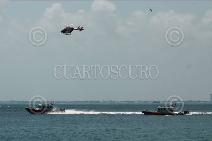 ISLA MUJERES, QUINTANA ROO, 06ABRIL2011.- La secretaria de Marina - Armada de México pondrá en marcha el Operativo Salvavidas 2011, del 15 de abril al 1ro de mayo con el objetivo de brindar seguridad en los principales destinos turísticos de mar del país. En instalaciones de la Quinta Región Naval se realizo una demostración con ejercicios simulados de las acciones que se atienden en este tipo de periodo como por ejemplo riña en la playa, rescate y búsqueda de personas ahogadas en el mar con personal, embarcación y con helicóptero. FOTO: RODOLFO ANGULO/CUARTOSCURO.COM