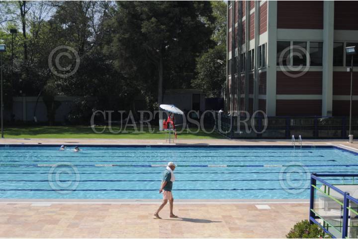 MÉXICO, D.F. 25ENERO2012.- Un hombre pasea alrededor de la piscina que se encuentra en el interior del Centro Deportivo Chapultepec. FOTO: DIEGO SIMÓN SÁNCHEZ/CUARTOSCURO.COM