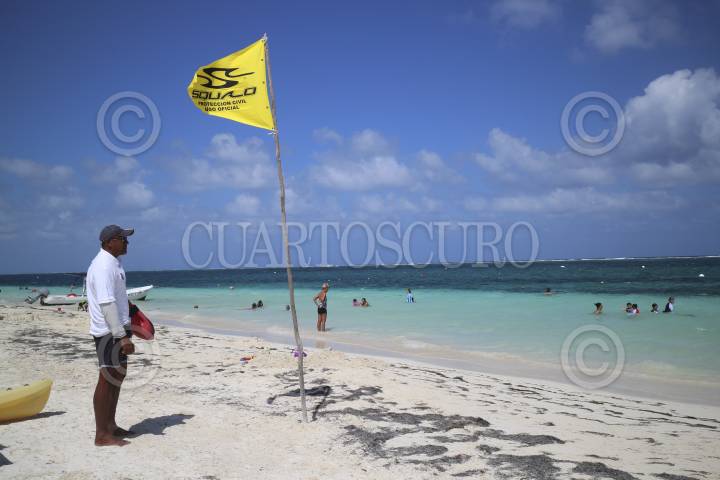 CANCUN, QUINTANA ROO, 15ABRIL2014.- Un elemento de protección civil vigila una de las playas en Cancún donde se empieza a ver la afluencia de visitantes en este destino turístico para disfrutar las vacaciones de semana santa y semana de pascua. FOTO: ELIZABETH RUIZ /CUARTOSCURO.COM