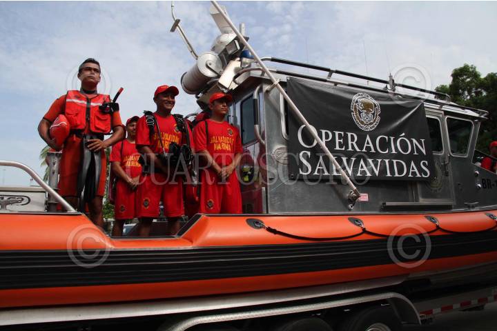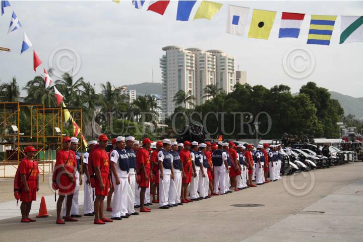 ACAPULCO, GUERRERO, 14JULIO2015.- Da inicio la "Operación Salvavidas Verano 2015" a cargo de la Secretaria de Marina en el puerto de Acapulco, en este operativo se movilizarán por toda la costera salvavidas, bomberos, marinos, militares, policía federal y estatal; para brindar mayor seguridad a los turistas nacionales e internacionales. Este operativo estará vigente hasta el 24 de agosto. FOTO: ISABEL MATEOS /CUARTOSCURO.COM