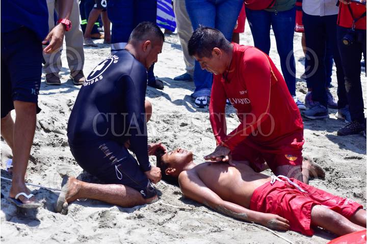 Salvavidas auxiliaron a varios bañistas que fueron arrastradas por la corriente en Playa Delfines.