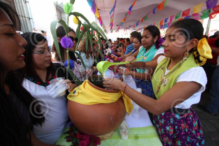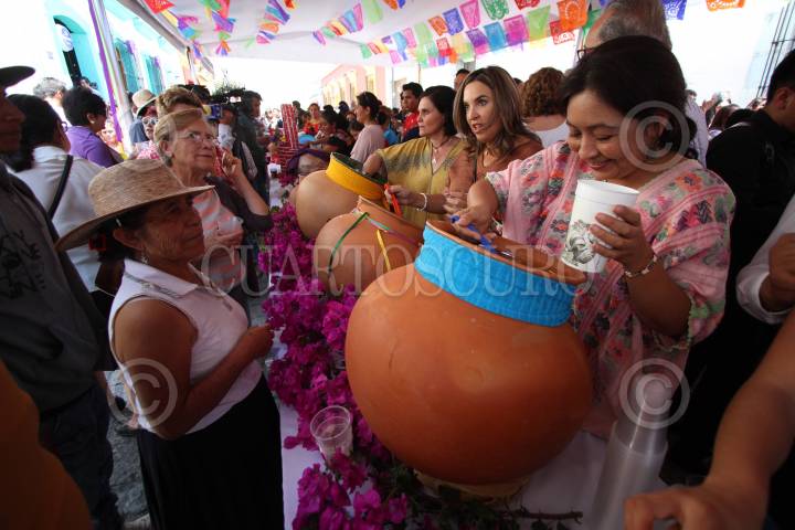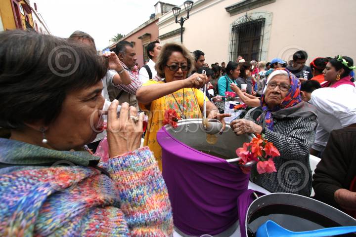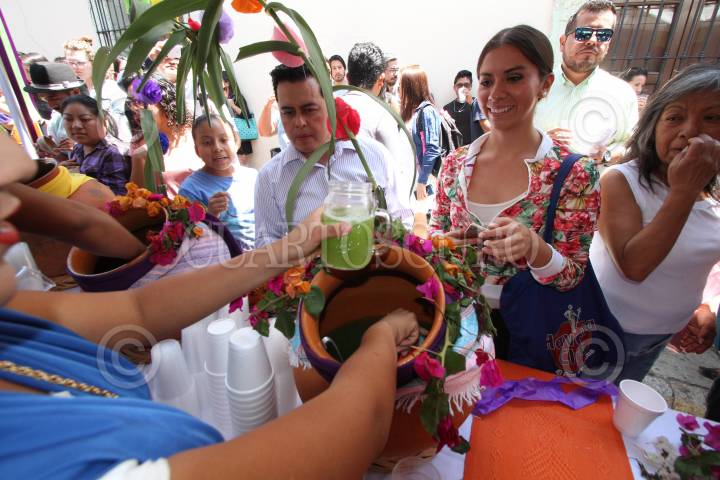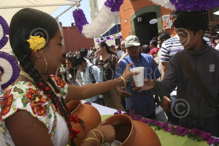OAXACA, OAXACA, 08MARZO2013.- Tal y como lo marca la tradición oaxaqueña el cuarto viernes de cuaresma se realiza la representación del pasaje bíblico de la "Samaritana", en el que una mujer da de beber a Jesucristo, por ello se realiza un festival en el que diversas dependencias, escuelas u organizaciones regalan aguas frescas a los paseantes, horchata, guanábana, limón, son tan solo algunos de los sabores que son obsequiados. FOTO: ARTURO PÉREZ ALFONSO /CUARTOSCURO.COM