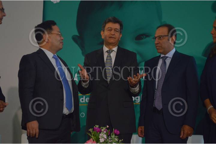 CIUDAD DE MÉXICO, 08JUNIO2017.- H.S. Jo, presidente de Samsung Electronics México y Marco Slim Domit durante el evento de la donación simbólica de mil tabletas cuya característca es un lector NFC, que permitirá al personal de vacunación escanear un código adherido a las Cartillas Nacionales de Salud para generar un respaldo digital de la información de vacunación de los derechohabientes. Se espera que para finales del año más de dos millones de niños menores de 5 años cuenten con la Cartilla Electrónica de Vacunación a nivel nacional. FOTO: SELENE PACHECO /CUARTOSCURO.COM
