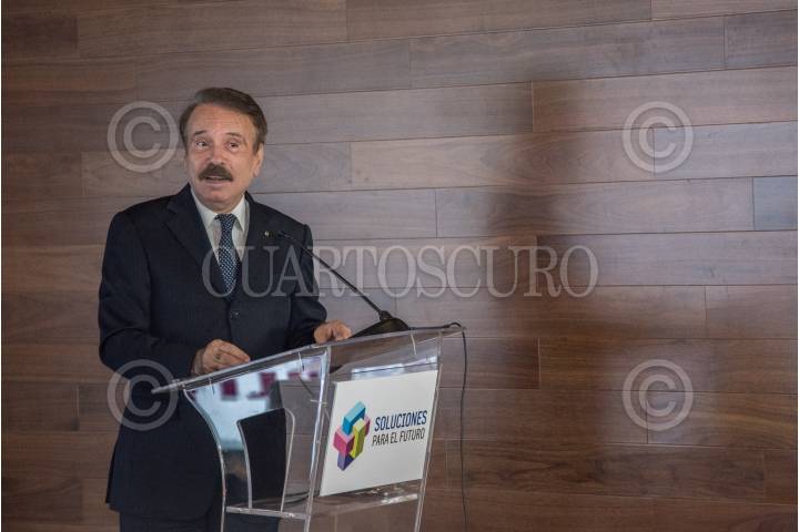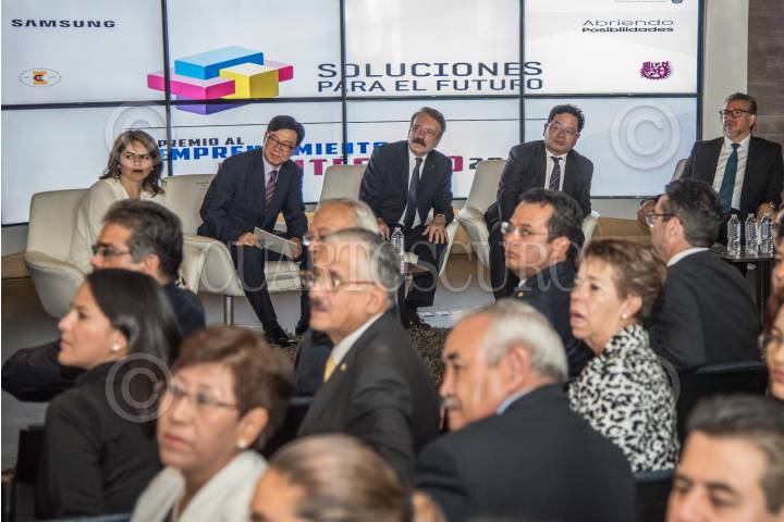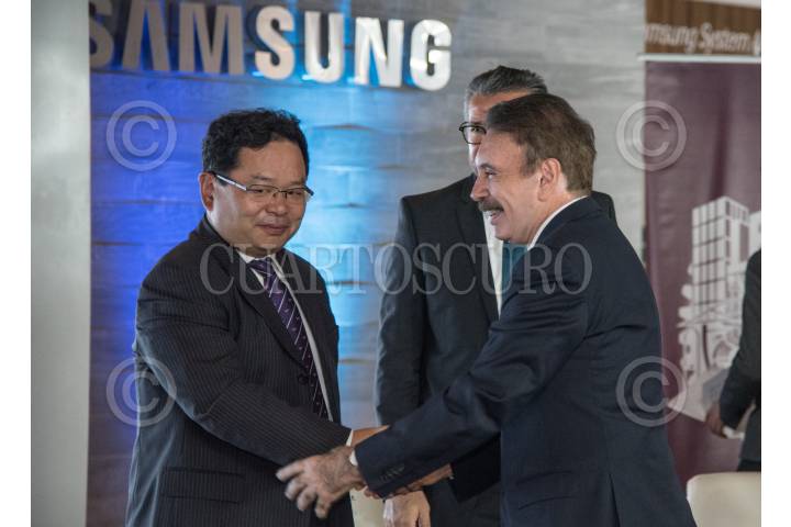 CIUDAD DE MÉXICO, 03ABRIL2018.- Mario Alberto Rodríguez, director general del Instituto Politécnico Nacional (IPN), y HS Jo, presidente de Samsung Electronics de México, presentaron la edición 2018 del Concurso Soluciones para el Futuro “Premio al Emprendimiento Politécnico”, la cual busca fomentar reconocer el talento emprendedor dentro de la institución educativa. FOTO: MARIO JASSO /CUARTOSCURO.COM