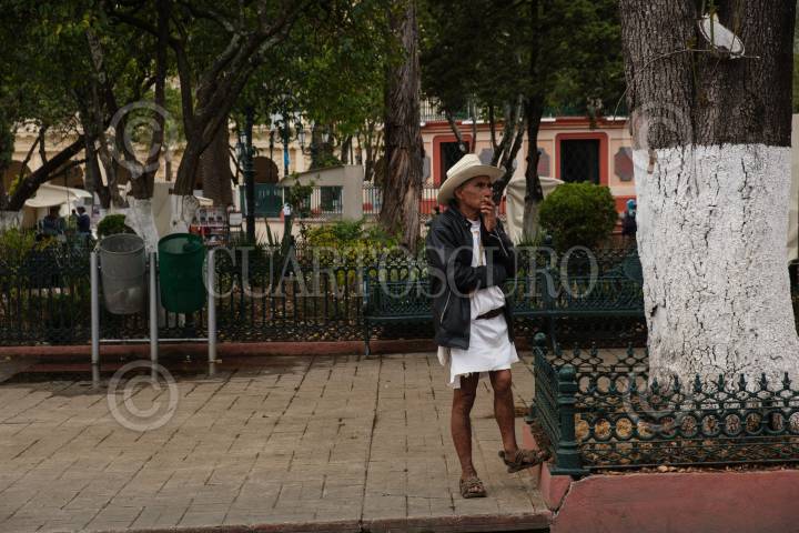 Un hombre espera a su familiar mientras este cobra remesas provenientes de Estados Unidos en la Plaza Central del municipio.