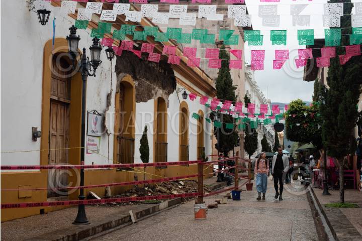La fachada de las oficinas del Sistema Nacional para el Desarrollo Integral de la Familia DIF resulto afectada por las intensas lluvias en san Cristóbal de las Casas.