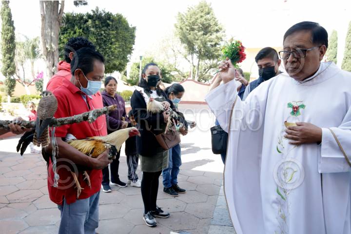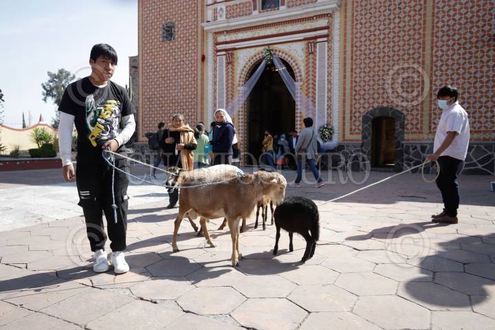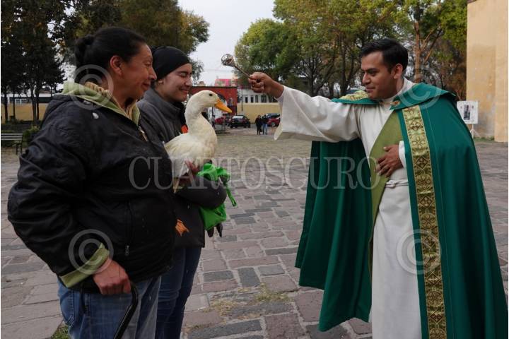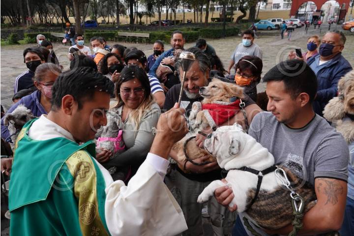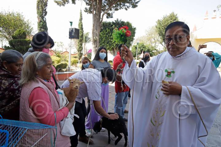 Habitantes de la comunidad de San Antonio Cacalotepec llevaron a bendecir sus animales y mascotas con motivo de la celebración del Día de San Antonio Abad, protector de los animales.