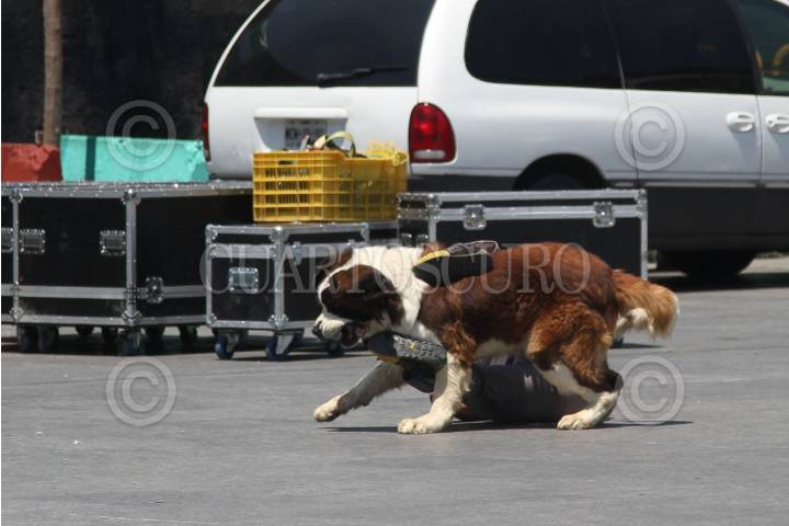 MÉXICO, D.F., 30MARZO2015.- Una persona juega con su mascota, un perro San Bernanrdo en calles de la delegación Iztapalapa. FOTO: SAÚL LÓPEZ /CUARTOSCURO.COM